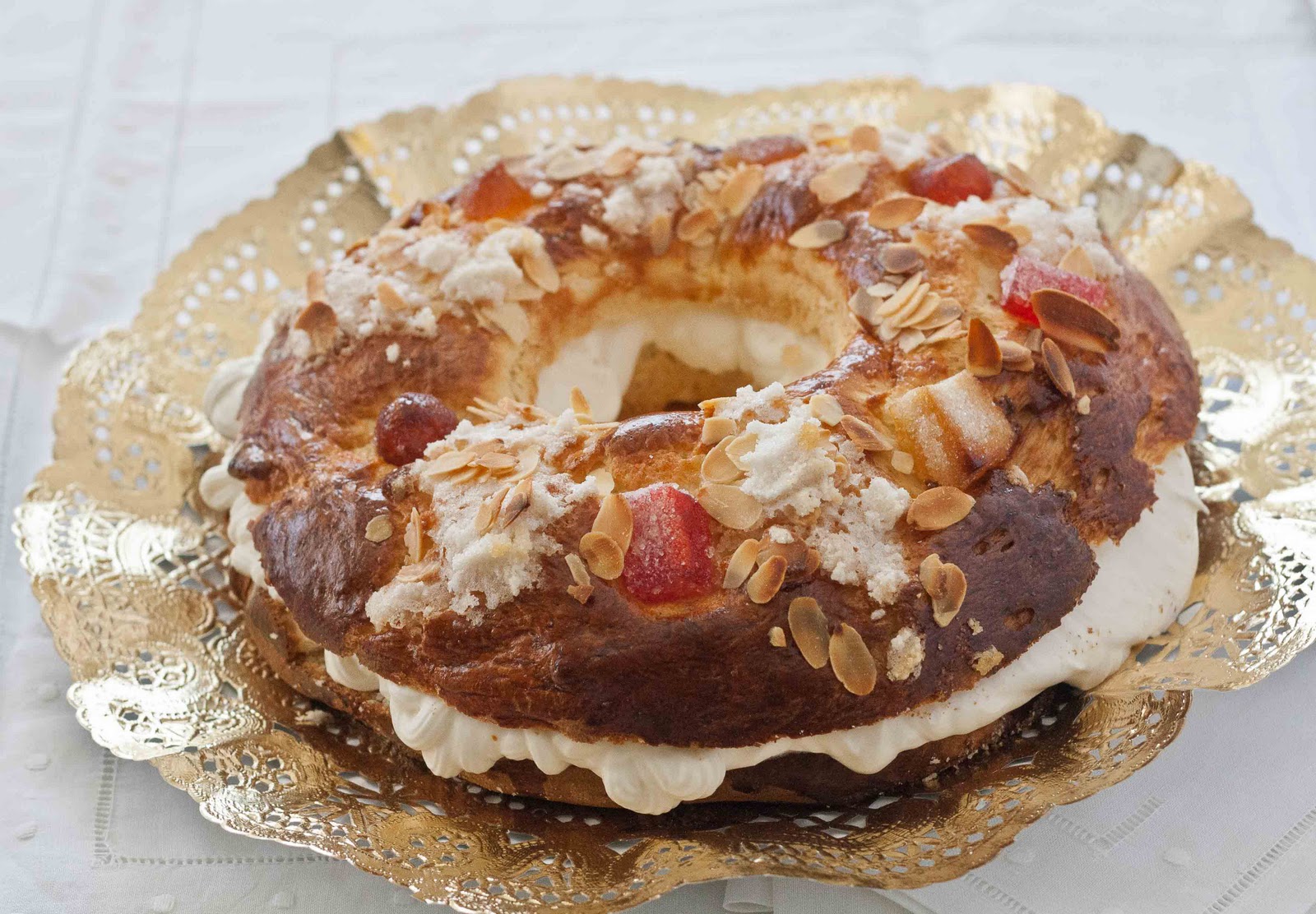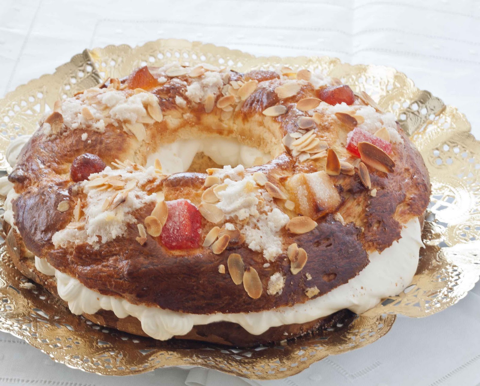 Last Christmas I read one of those odd stories in a newspaper. An architect had opened a shop specializing in "roscones" in Madrid. The funny thing is that it all started because his father loved this sweet and she tried and tried you she find the perfect recipe, and from there on, everything else came afterwards, including a great success.When I read it I thought that if you love "roscón" and you do not happen to have such a lovely daughter, you should live in Zaragoza. There, we start eating roscones on January the 6th, and we do not stop until the first week of February. I mean, first for Epiphany, then by San Valero, who is the patron saint of Zaragoza -and we celebrate with a twisted roll,- and we extend to San Blas, 3th of February. Roscón lovers, like me, are really happy with it.