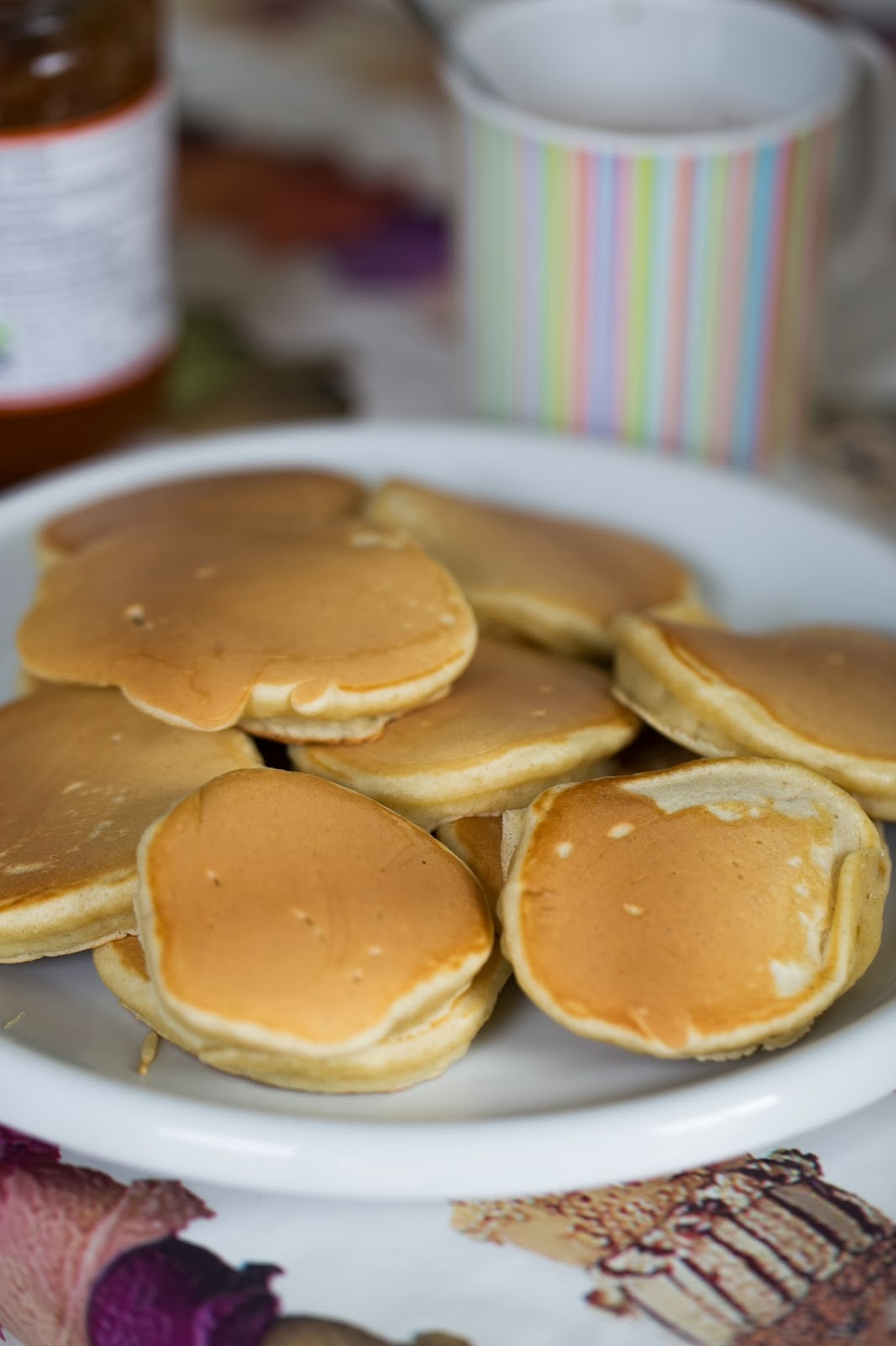 Conseguir hacerlas en un momento, y que se dorasen de manera uniforme me llevó un poco más de tiempo. Primero usaba una de mis sartenes favoritas, de hierro fundido de PYREX, pero aunque me encanta esta sartén, para las tortitas era demasiado pequeña, y no podía hacer más de dos al mismo tiempo. Además, me costaba ajustar la temperatura después de unas cuantas tandas y el resultado era algo desigual. Hasta que me acordé de mi maravillosa plancha eléctrica, esa que es grill por un lado y plancha por otra, y que es tan grande que la tenía guardada en el armario de encima de la nevera y tan aparatosa que solo me acordaba de ella un par de veces al año. Pues esa misma plancha en la mudanza ha encontrado nueva ubicación, y me deja hacer las tortitas de 6 en 6, todas quedan iguales, mantiene la temperatura uniforme durante todo el tiempo, y para mí ha sido un descubrimiento. Y la verdad, me encanta darle tanto uso, porque la pobre iba a hacerse vieja sin apenas haberla usado. Así que ahora mismo hacer las tortitas no me cuesta nada, y menos desde que mi hija mayor ha decidido que ella sola puede preparar la masa y hasta esta empezando a poner las tortitas en la plancha y darles la vuelta con un poco de ayuda. Así que dificultad cero y resultado absolutamente fantástico. No puedo más que recomendarte que las pruebes. Solas, con mermelada de albaricoque, que es nuestra preferida, sirope de arce (personalmente no me gusta nada), o salsa de chocolate, o básicamente lo que te apetezca, porque están buenísimas.