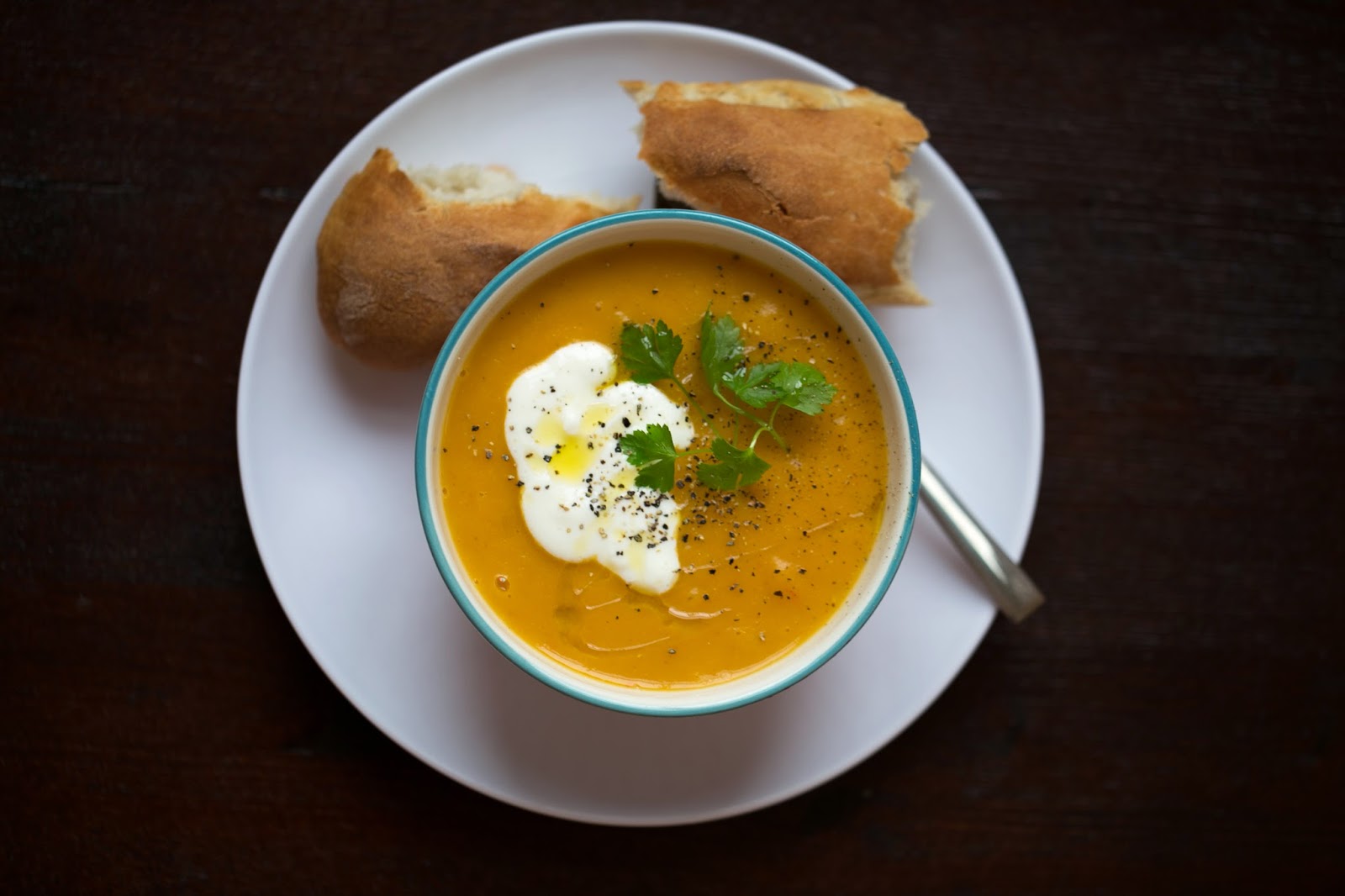 No sé si os pasa, pero si os gusta comer, estoy segura de que habréis notado que hay un tipo de comida que te deja el estómago triste. Sabes que está bien, pero no te llena, te deja con una sensación como de vacío, aunque sabes que has comido suficiente. No es siempre la misma comida, ni siquiera es cuestión de la cantidad. Es que hay veces que necesitas algo reconfortante pero que no te deje pesada o hinchada, solo algo agradable, pero nutritivo y delicioso, que te deje volver a la normalidad. Para momentos así, a mí siempre me apetece una crema. Puedes poner en ella casi cualquier cosa que tengas a mano y es casi imposible equivocarse. A diferencia de otras cremas de verduras, para hacer esta he asado primero las verduras en el horno con un poco de harissa, lo que les da un sabor especial. Y a partir de ahí, he hecho una crema como siempre. El resultado: simple, limpio, delicioso; como la promesa de un año entero por delante que nos vamos a comer bocado a bocado.