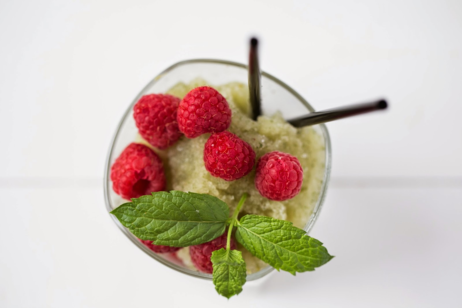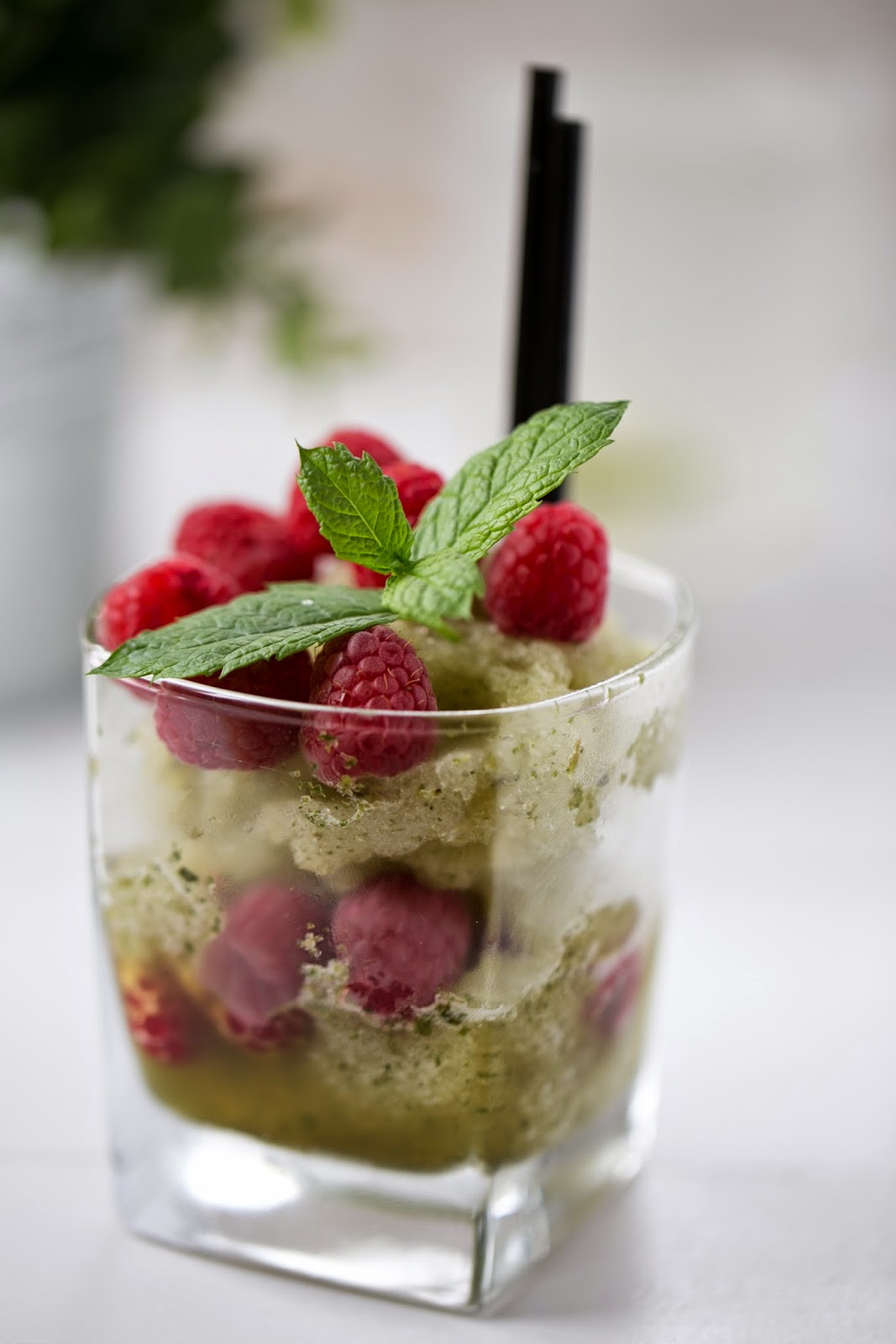 Yo tenía ganas de hacer un granizado refrescante, de sabor intenso. La menta me vino inmediatamente a la cabeza, y las frambuesas fueron lo siguiente.