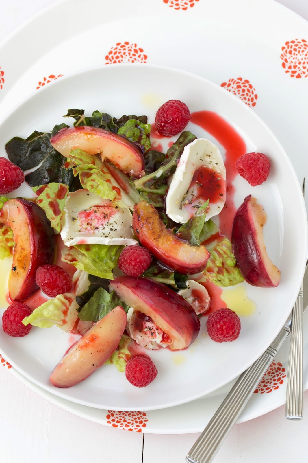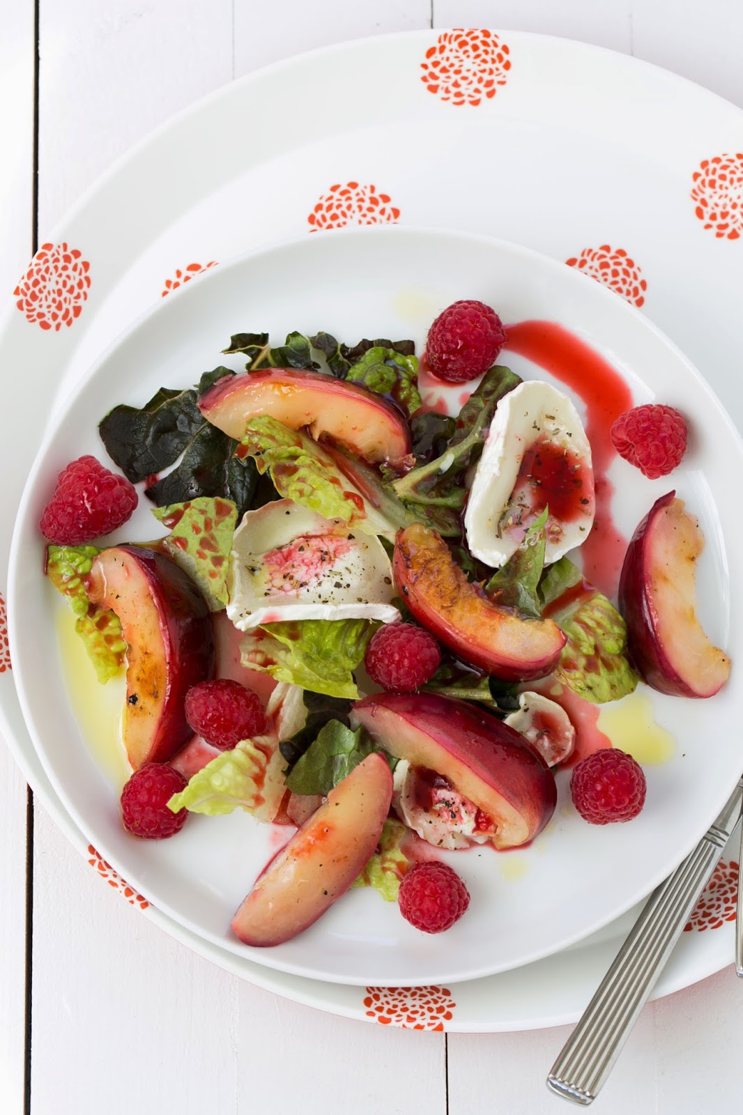 Uau, ha sido ver la primera foto de tu receta y enamorarme de ella. Me encanta añadir fruta en las ensaladas pero mis mezclas han sido siempre de escarola, naranja y granada o manzana con nueces. Tengo que probar la nectarina y las frambuesas y tu truco para calentar el queso. Muchísimas gracias por compartir y felicidades por la gala! :)