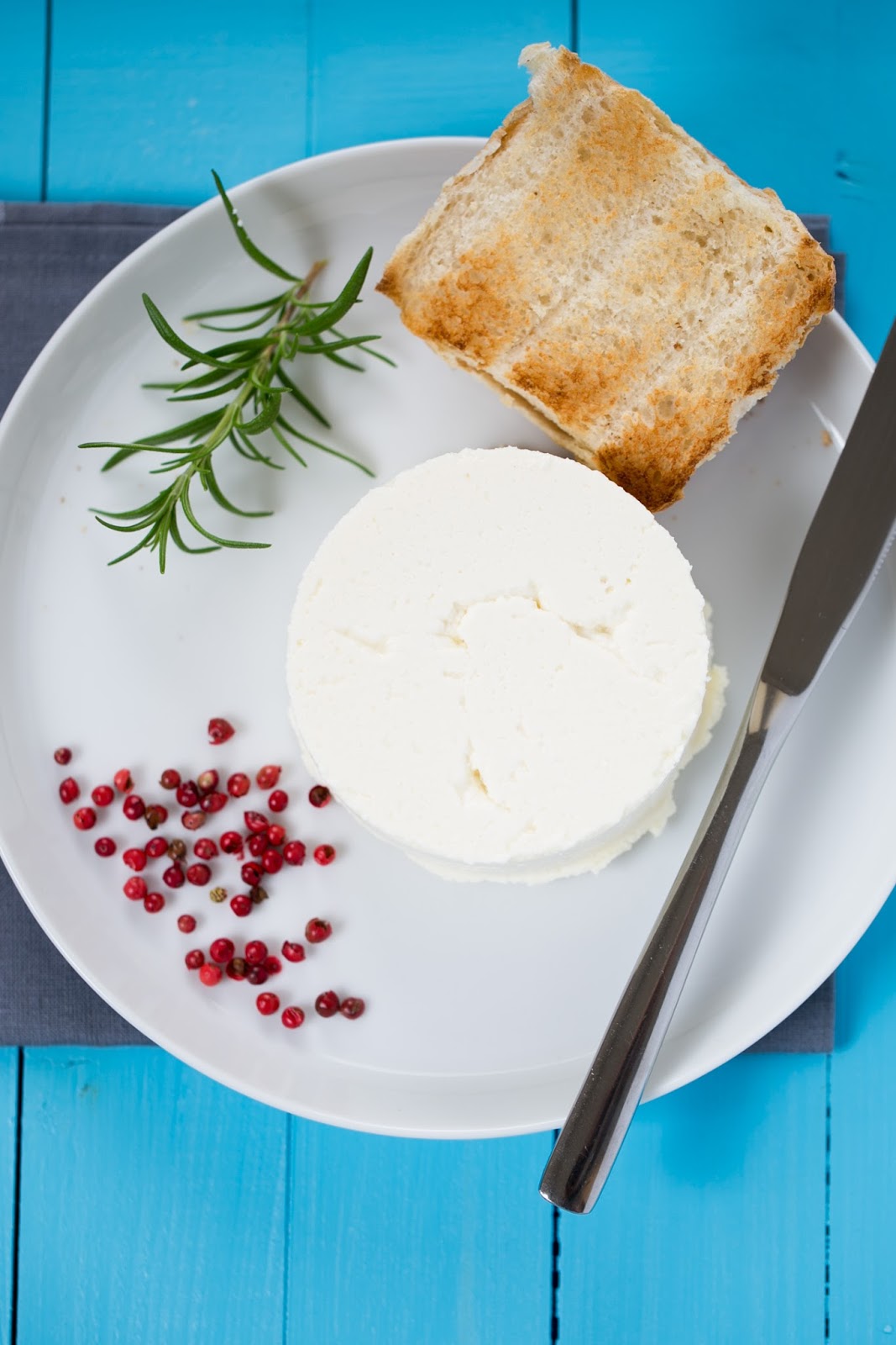 A mí me gusta que tenga esta forma redondeada, así que después de escurrirlo lo guardé en la nevera en un bote de plástico hermético con un molde circular. Después de unas horas en la nevera, se puede quitar y el queso habrá mantenido la forma. También lo puedes dejar hasta el momento de servirlo.